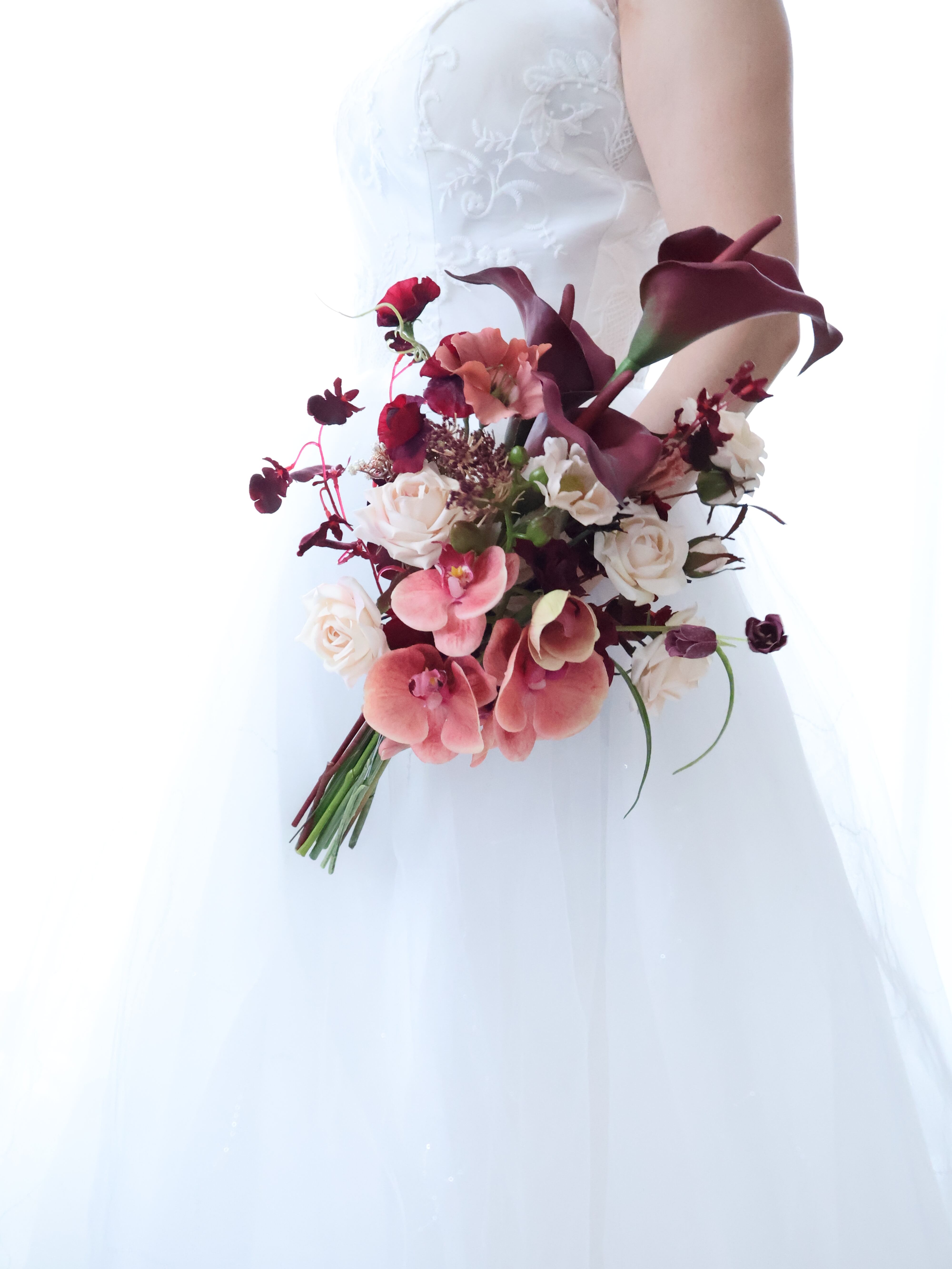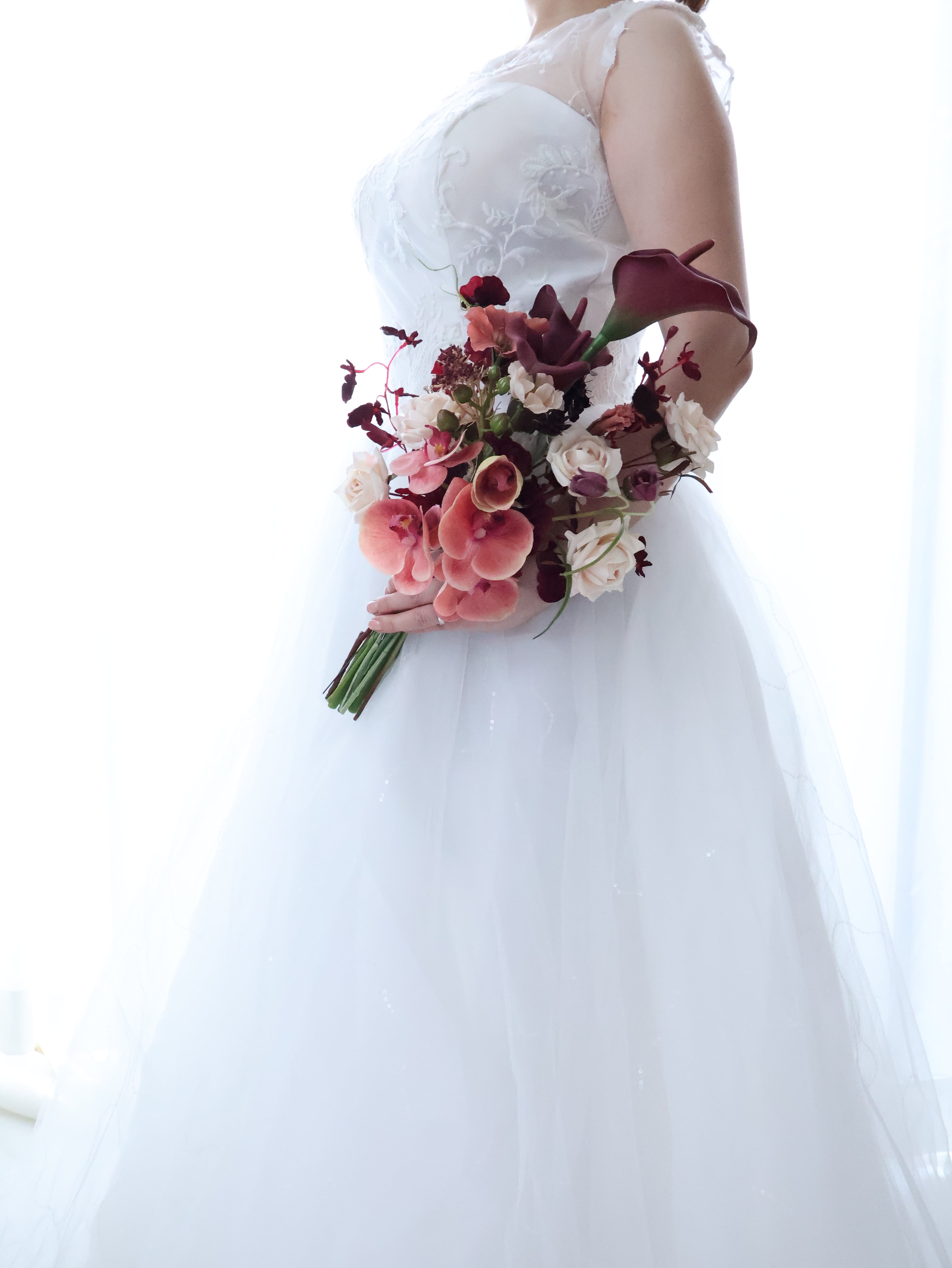 バーガンディの深みと胡蝶蘭の華やかさが
