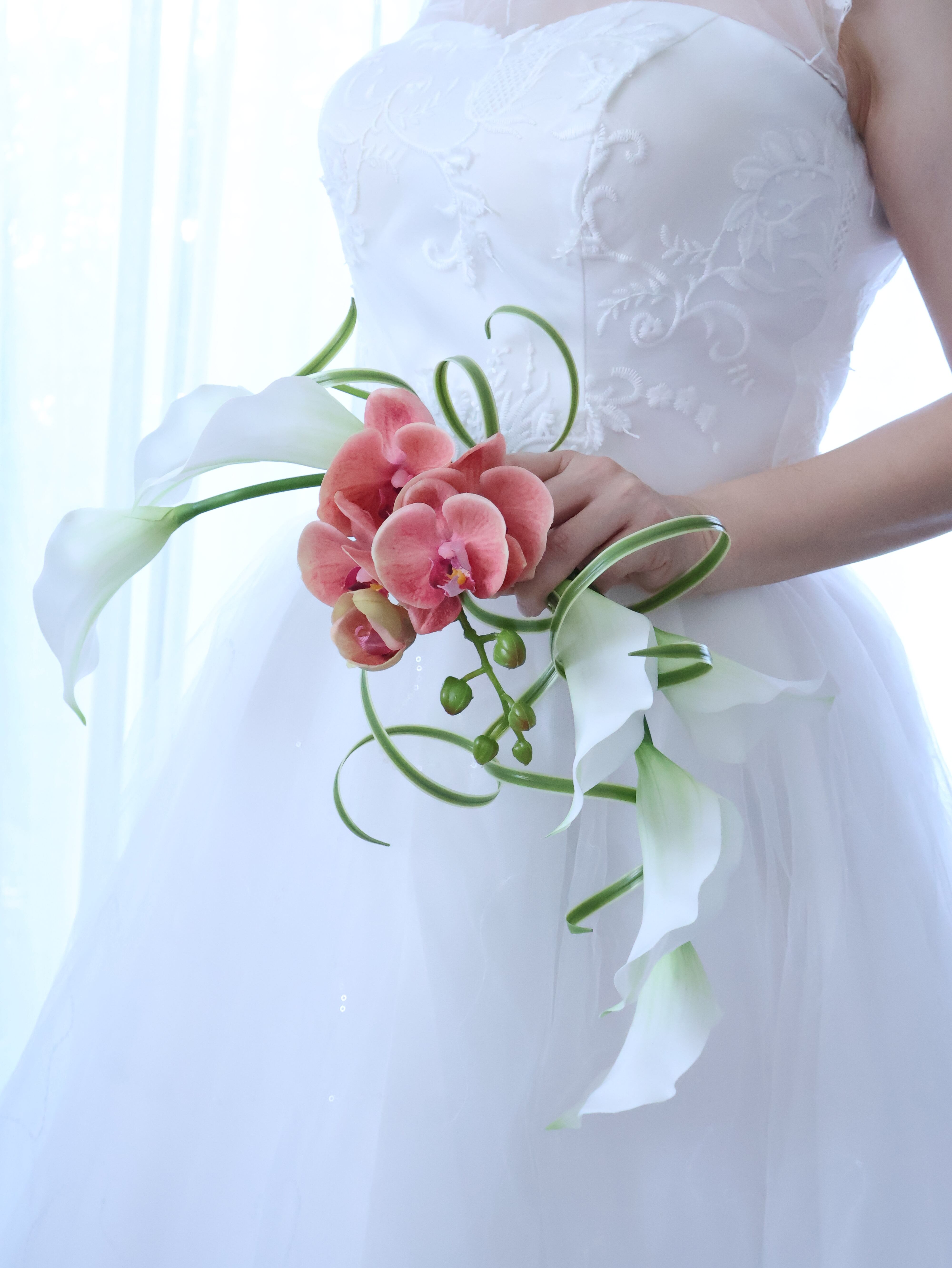 花嫁さま人気No.1のカラーと胡蝶蘭を、シンプルに束ねた一束
