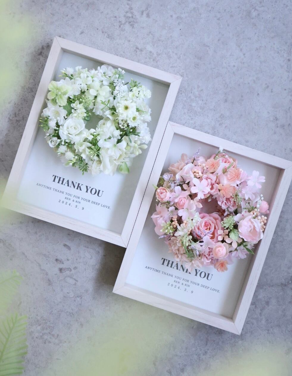 【受注制作*フレームアレンジ】2個セット・ハート型 / 両親贈呈品、記念日ギフト