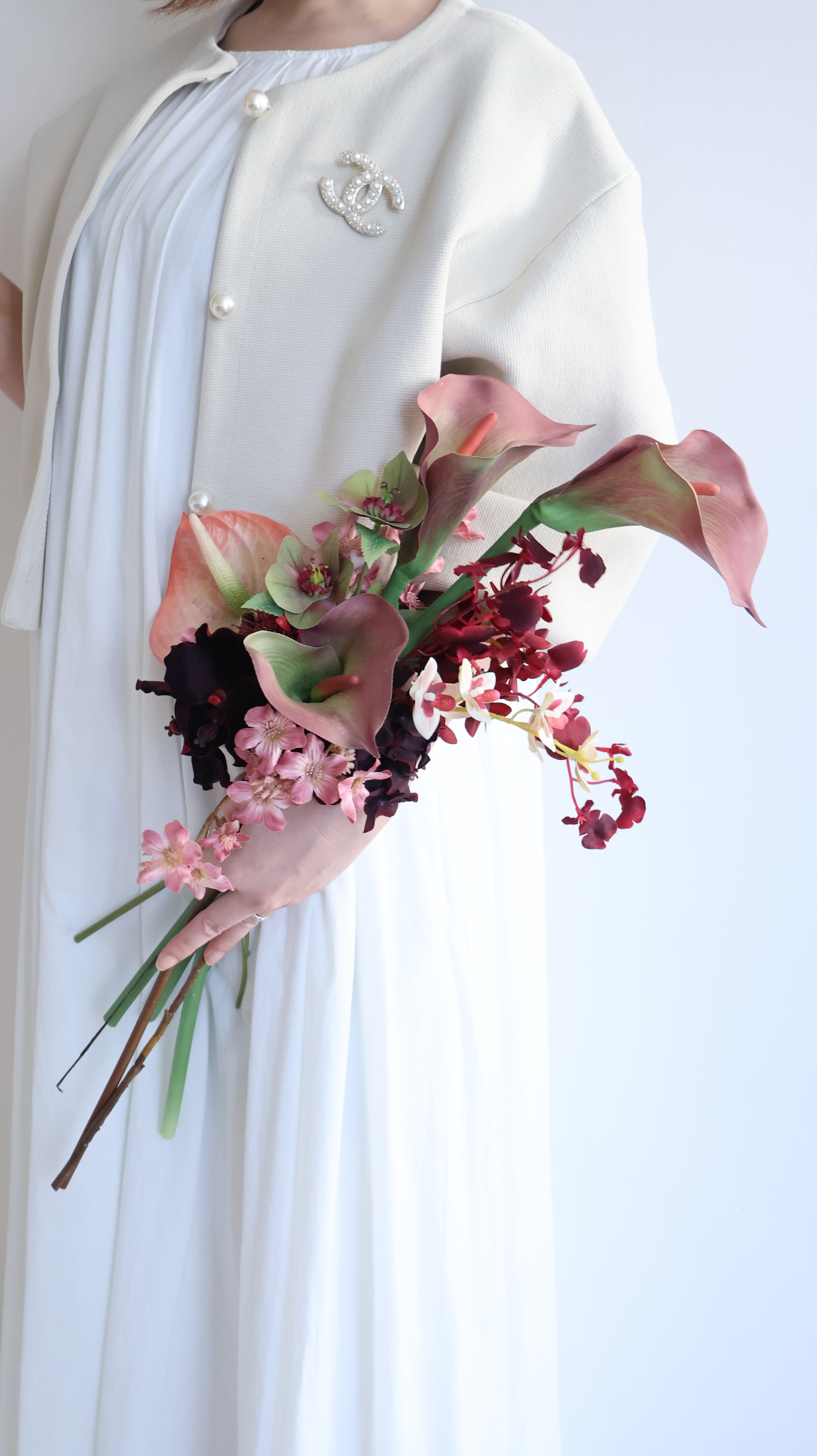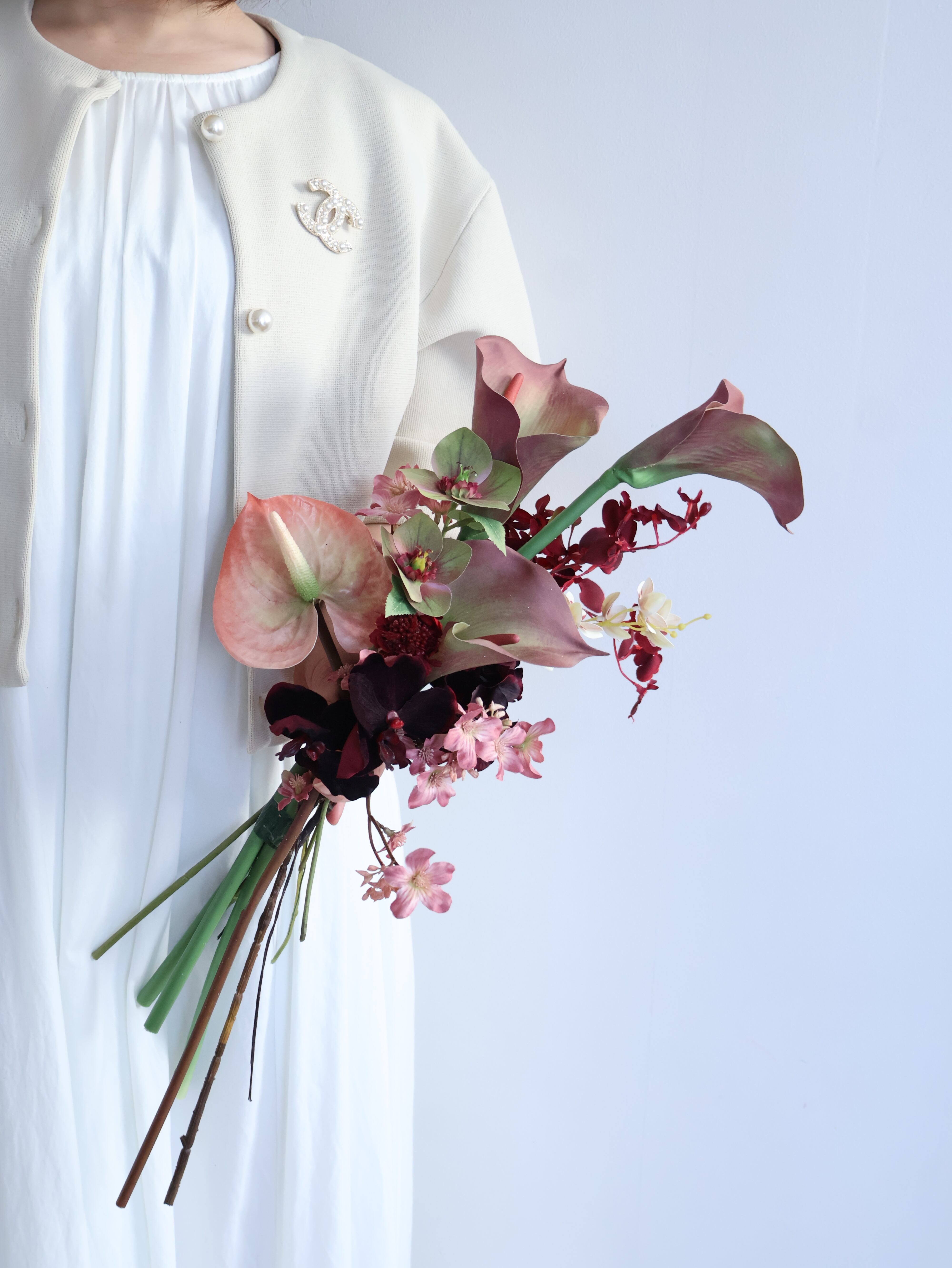 【訳アリ】大人色カラーアンスリウム・アームブーケ☆ブートニア付き