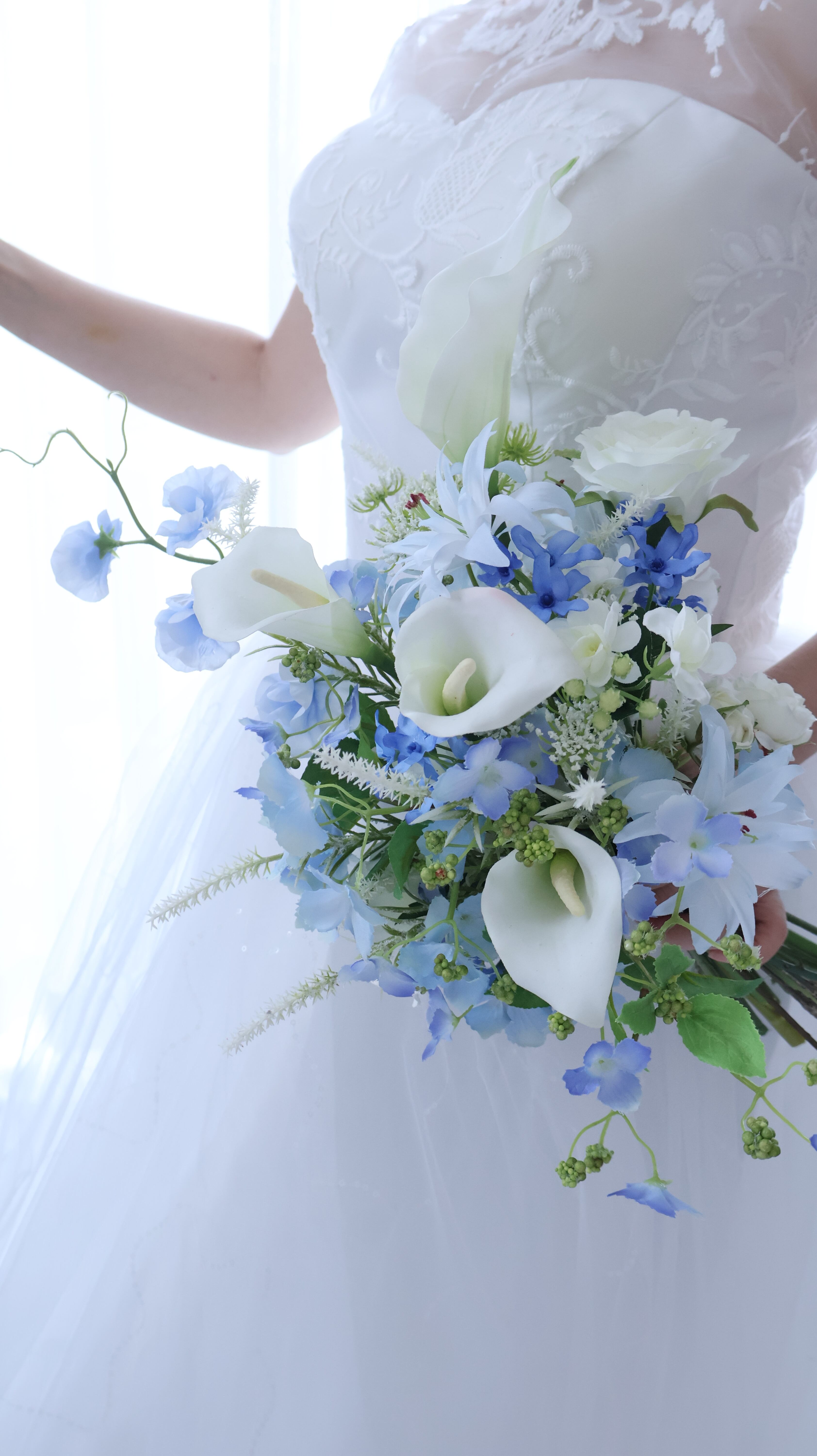 爽やか上品ブルーブーケ☆ブートニア付き【訳アリ】